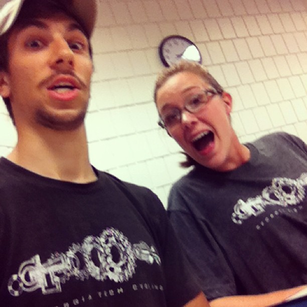 Previous Image Next Image Shirts Christian DiCenso and Kate Hettinger rocking the exploding cassette t-shirt in class.